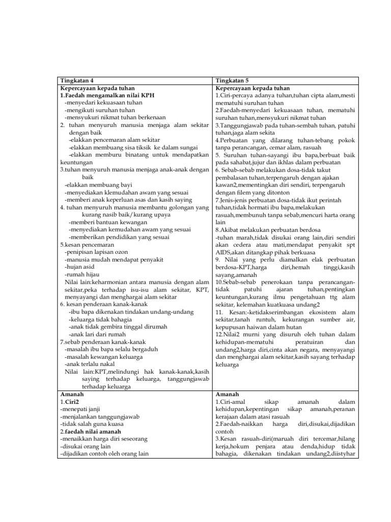 This means the question in SPM Trial Paper may be similar to what appears in the actual SPM exam. Koleksi Nota SPM Pendidikan Moral Nilai dan Definisi Pendidikan Moral Jadual di bawah adalah semua 36 nilai-nilai murni dan huraian dalam mata pelajaran Pendidikan Moral. PERKEMBANGAN DIRI 1 Kepercayaan kepada Keyakinan wujudnya Tuhan sebagai pencipta alam dan mematuhi Tuhan segala suruhanNya berlandaskan pegangan agama masing-masing selaras dengan prinsip Rukun Negara.
